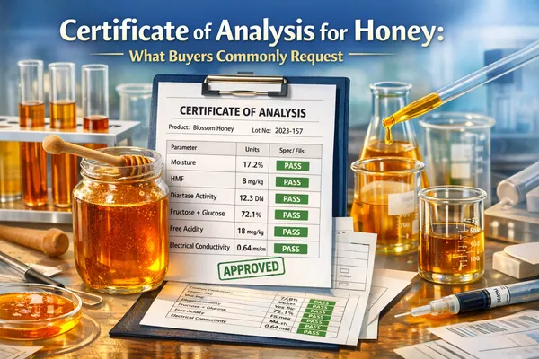| Electrical conductivity | Helps characterize honey type and profile | Common in spec packs for varietal alignment and consistency. |